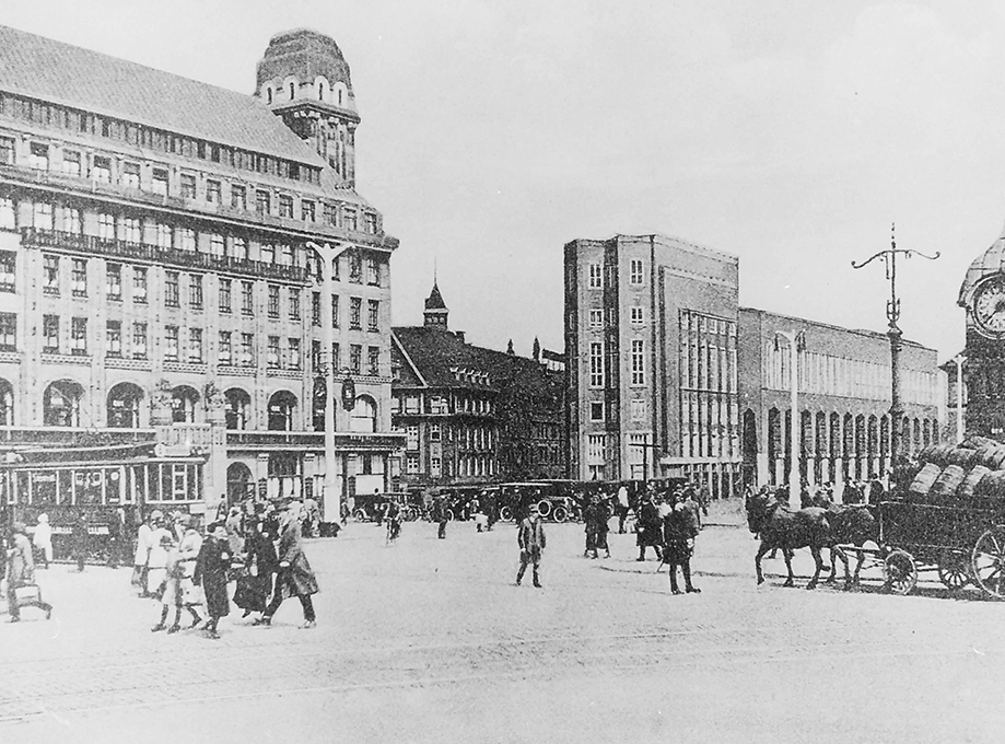 Es war einer dieser nasskalten Tage, als Fräulein Clara Jung zum letztem Mal die Essener Börse betrat. Hier im Gebäude war neben der Börse eine Abteilung der Reichsbehörde für Bauangelegenheiten untergebracht. Da die Börse geschlossen worden ist, soll auch bald die Reichsbehörde ausziehen. Hier hatte sich doch Prof. Dr. Edmund Körner in dem von ihm, als renommierter Architekt, geplanten Neubau die „Essener Börse“ 1922 sein eigenes Büro eingerichtet. Eine Nebenstelle der Behörde klein und unscheinbar. Die Auflösung der Börse und das ein neuer Bildungsverein jetzt hier einziehen soll, ahnte niemand. Ein erstes Schild mit den Buchstaben „HDT“ wurde schon über einem Eingang angebracht.